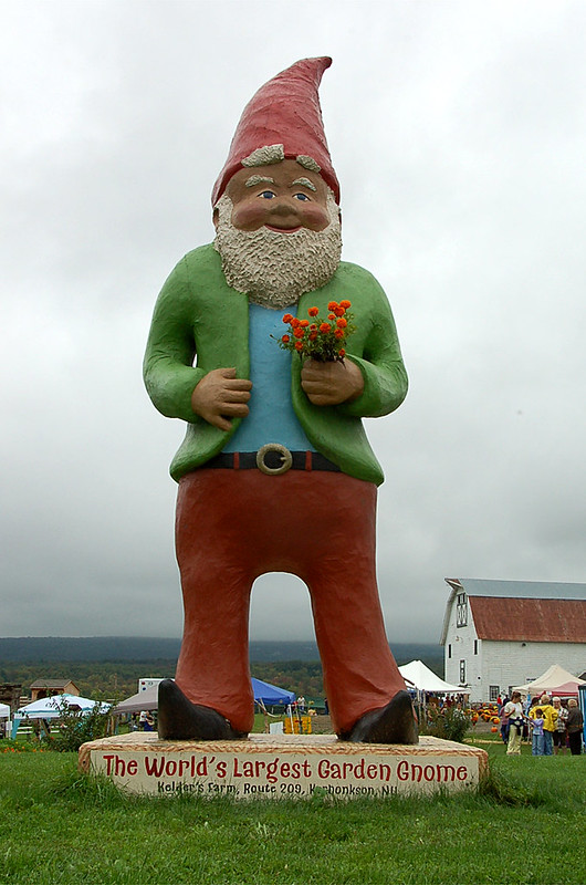 The Gnome Chomsky, a quirky roadside attraction, is a quick and unique stop! You’ll find one of the world’s largest garden gnomes just outside Kerhonkson’s small hamlet at Kelder’s Farm’s entrance.